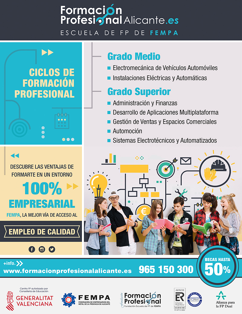2018-10-02Ayudas para fomentar el acceso de las alumnas a las enseñanzas de Formación Profesional Inicial del sistema educativo correspondientes a determinados ciclos de las familias profesionales de Electricidad y Electrónica, Energía y Agua, Fabricación Mecánica, Instalación y Mantenimiento y Transporte y Mantenimiento de Vehículos en centros educativos públicos de la Comunitat Valenciana para el curso […]